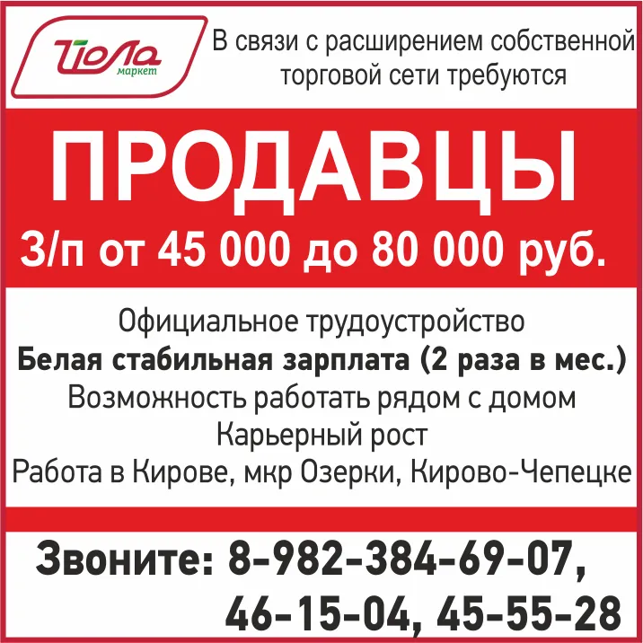 Газета «Рабочие места» – деловое специализированное издание о работе в Кирове, ориентированное на соискателей, ищущих работу, а также специалистов отделов кадров, кадровых служб и руководителей предприятий и организаций.
