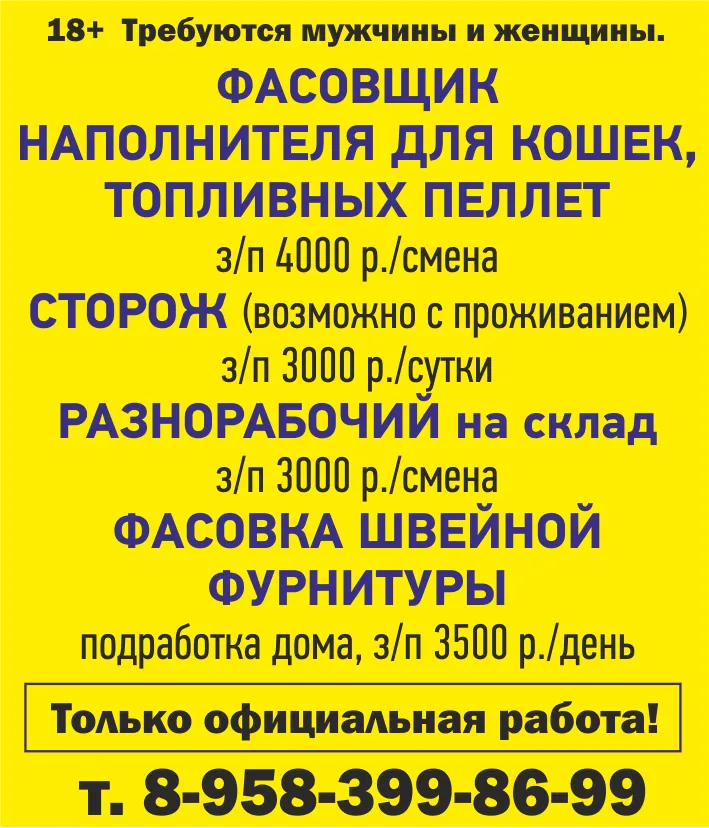 Гарантируем: официальное трудоустройство по ТК РФ; достойная оплата труда; комфортные условия и удобный график.